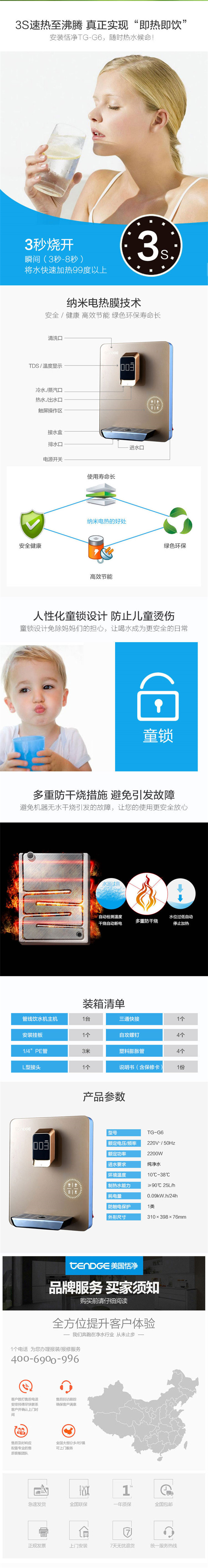 恬凈速熱管線飲水機TG-G6,采用納米電熱膜加熱技術(shù),有效殺死水中的細菌微生物,防治二次污染。3秒速熱,隨時可喝上熱水。恬凈速熱管線飲水機TG-G6自帶防干燒系統(tǒng)與童鎖,安全省心。