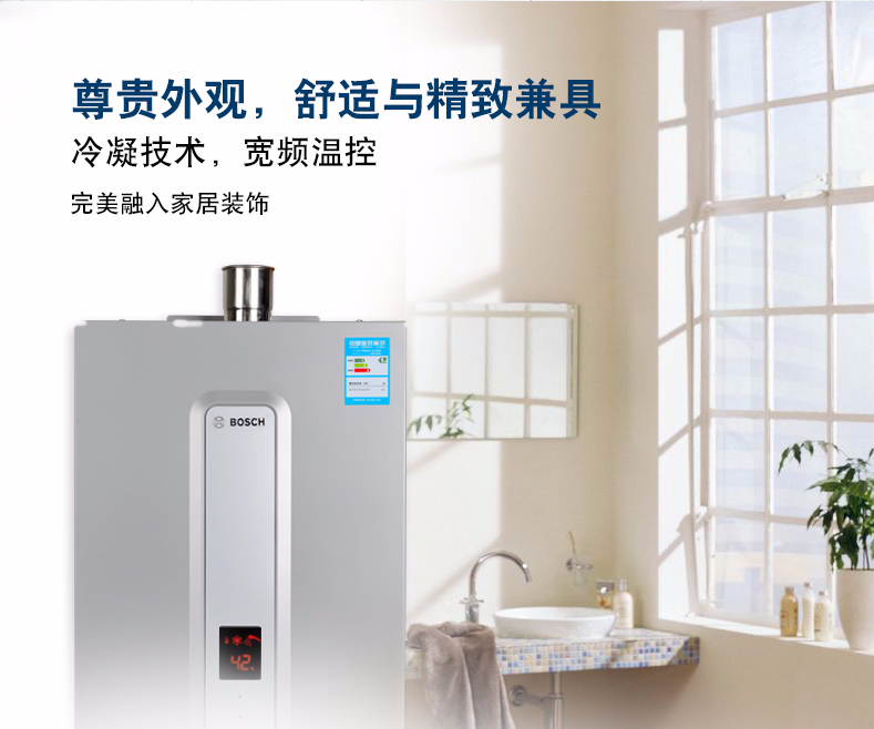 集先進的冷凝技術和智能恒溫為一體,通過二次熱交換器,充分吸收高溫煙氣中的剩余熱量(潛熱部分)來預熱冷水,再通過主熱交換器,實現(xiàn)熱效率達100%以上。